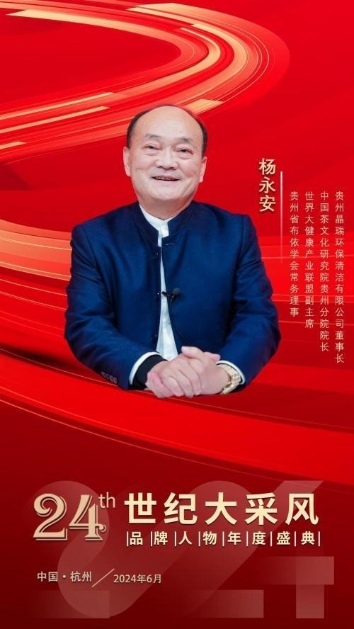 杨永安 贵州晶瑞环保清洁有限公司董事长、中国影视歌曲大赛组委会副秘书长、中国茶文化研究院贵州分院院长、贵州省黔南州农业产业协会名誉会长,贵州省布依学会常务理事长。先后荣获得“生态黔南布依标杆”、“小康寨建设帮扶模范”、十佳光彩事业贡献奖”、“黔南州十大优秀企业家”等荣誉称号。