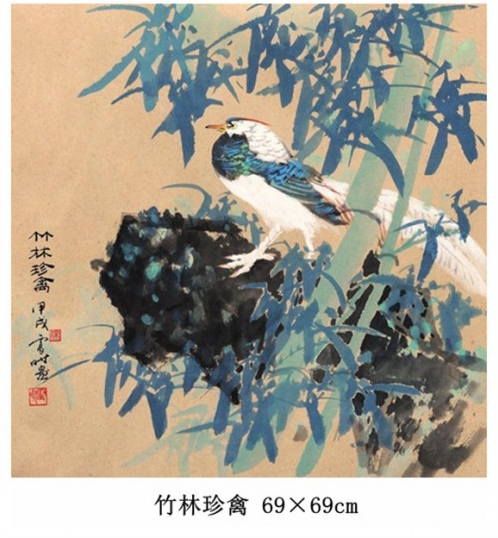 丰富的艺术生涯,博览古今中外名人名作,选编各类图书,得益于当年美院大师、名家的博导,总结别人,提高自己,有奉献,有收获,在国家出版社这所高等学府里继续深造。改革开放,中外合作出版,踏遍青山人未老,博览祖国锦绣山河,民族风情,是取之不尽的创作源泉,是从事艺术事业有作为的艺术家必经之路。方增先先生为其作品题字,“他把见识和心得发之于笔底,使他绘画上取得可喜的成绩,他的花鸟、山水、人物画得十分生动有致,富有诗意。浑厚、华滋,乃水墨之道的最高境界”。