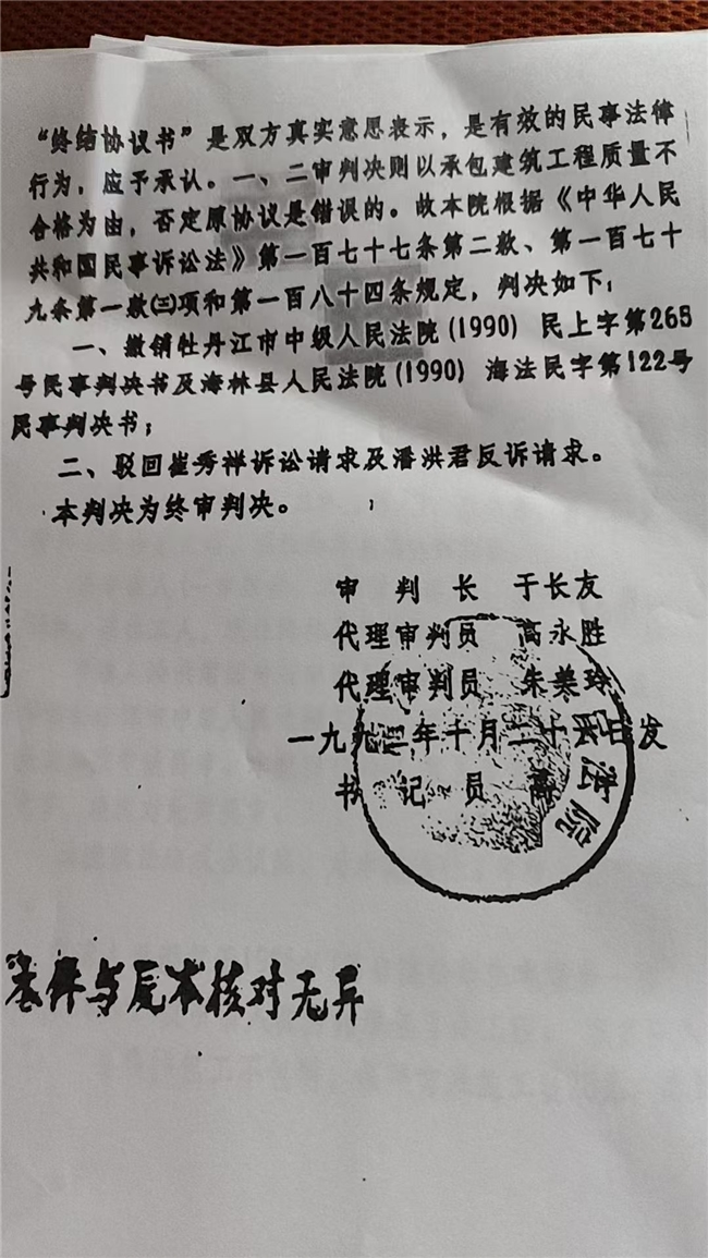 牡丹江市中院怕露丑,稳匿监审卷。海林市委出面都沒查到。却查到牡丹江市中院档案室案号在,内容却被调了包?!追查了三十多年,今年最高人民法院院长张军同志收到潘洪君特快专递,层层转办,终审法院再次支找牡丹江市中院,仍然没有合理的答复!!!