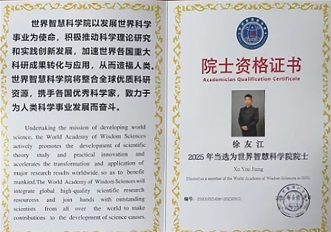 2025 年 9 月当选为“ 世界智慧科学院院士 ”。