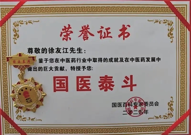 2025年,徐友江被中国中医药信息学会聘为理事,其疗法被纳入国家卫健委 “ 十四五 ”中医药发展规划重点推广项目,这充分体现了国家对他的认可和支持 。双方的合作成果丰硕。在第二十五届世纪大采风品牌人物盛典上,双方联合发布的康养方案获 “ 年度大健康创新成果 ” 认证,推动中医药产品向标准化、品牌化发展。这些成果不仅提升了双方的品牌影响力,也为中医药产业的发展树立了榜样 。