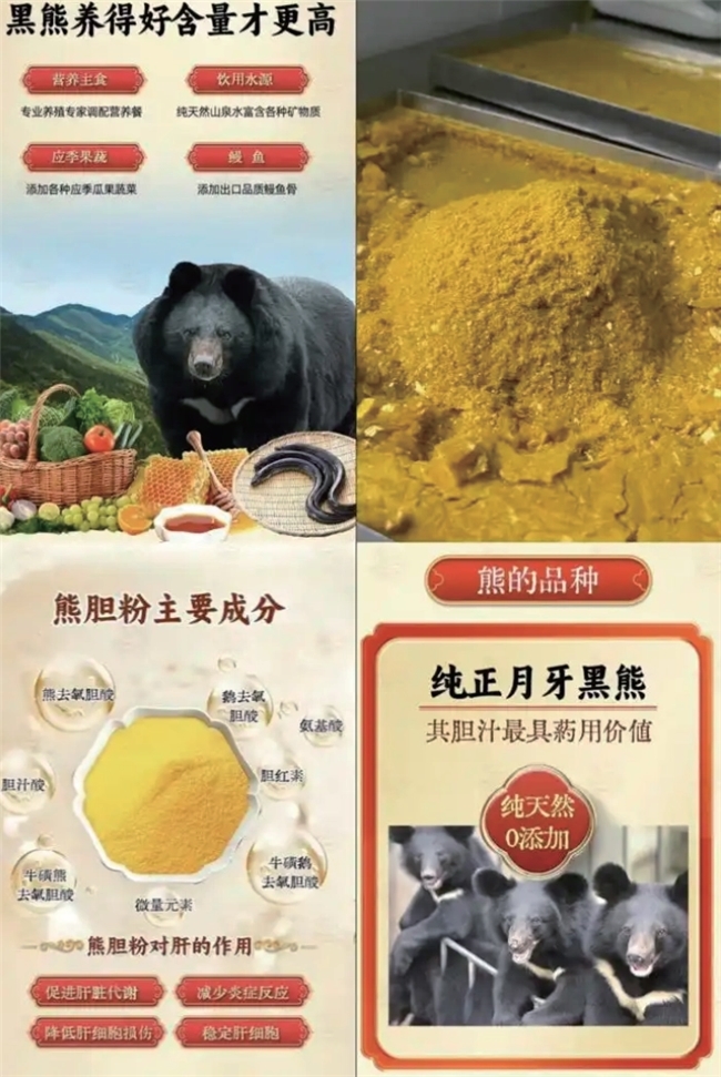 提取与产品研发,力求在保护野生动物的同时,让这份自然的馈赠惠及更多患者 。双方的合作,构建了“ 养+产+学 + 研 ”一体化模式 。双方在熊胆粉的运用上,致力于黑熊的规范化养殖、科学提取与产品研发 。从源头把控药材质量,通过科学研究深入挖掘熊胆粉的药用价值,再将研究成果转化为实际产品,形成了完整的产业链条 。