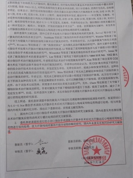 结果没有立上,省卫生协会给我的理由是专家给你打的分低!我不知道这是为什么?后来于2016年及2018年两次查新仍然是全国独有,特别是2018年国内外查新,查新编号2018396 。