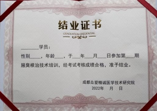 凡取得证书者配置到各教学医院从事腋臭根治工作。