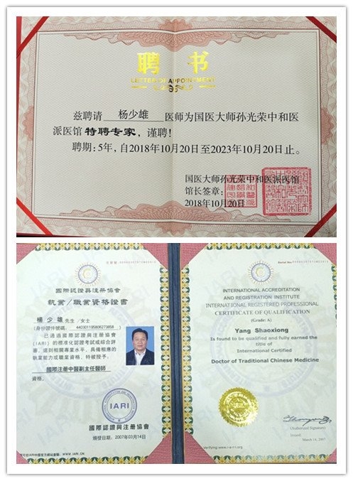 2007年3月取得国际注册执业/职业资格证书(国际注册中医副主任医师)注册号:009A0307DTCM03915,在IARI中国官方网站可查验:www.iari.cn。