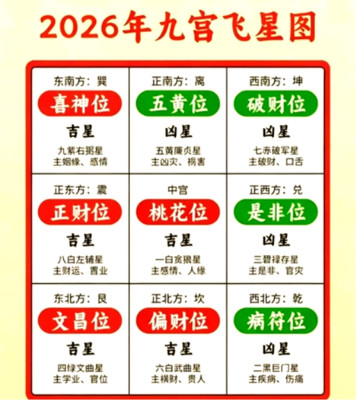 9.今年的三煞位是(黑、白、红煞)劫煞(西北方位)属猪相。灾煞位(正北位)属鼠相。岁煞位(东北位)属牛相,忌动土、建造、迁居、安神、起灶、功名。