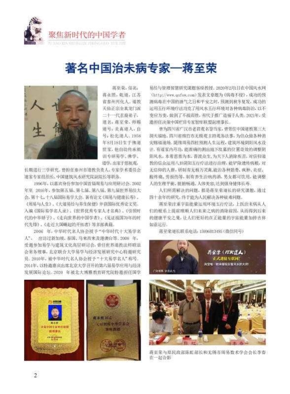 2020 年 2 月 1 日在中国风水网发表文章题为病毒不侵,成功的预测病毒在中国的泄气之日和平安之时,预测到秋冬复发,成功的运用五行环境疗法功克了用风水五行环境对各种病毒防治,以不变应万变,做到了不战而胜,有代于推广造福于人类。